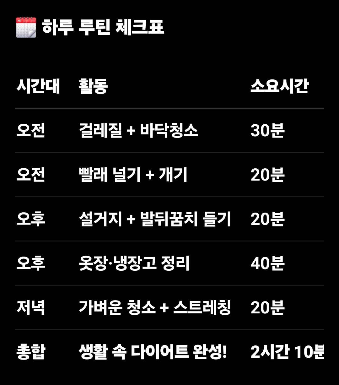 집안일 다이어트 루틴표로 하루를 관리해보세요 💪